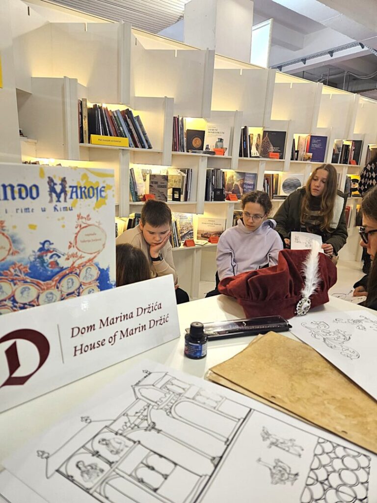 Kustosica Doma Marina Držića, Valerija Jurjević, na ovom je, 47. Međunarodnom sajmu knjiga, održala edukativnu radionicu „Piši kao Držić i rimuj u Rimu“ na štandu Muzejskoga dokumentacijskog centra (MDC).