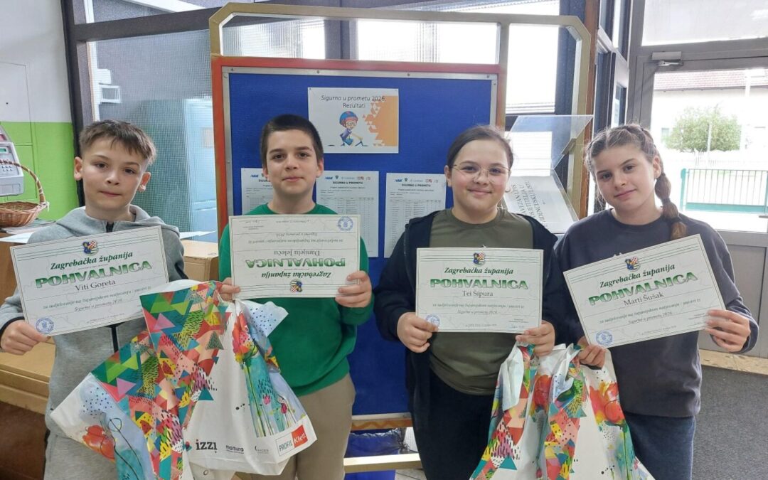 13. travnja u Velikoj Gorici održano je županijsko Natjecanje Sigurno u prometu. Domaćini su bili OŠ Jurja Habdelića. Ekipu naše škole činili su učenici 5. razreda Marta Šušak i Tea Šipura te šestaši Danijel Jeleč i Vito Goreta. Osvojili su odlično 5. mjesto u konkurenciji 11 osnovnih škola.